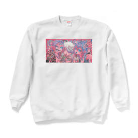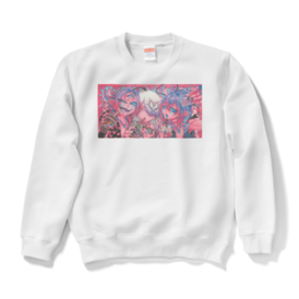 スウェット - XL - ホワイトダラダラ兄弟(シダラ&ミダラ)と作者代理キャラ•レミスが仲良くしているスウェットです♡ この商品はpixivFACTORYで作られた商品です。サンプル画像は完成イメージのため、 実物と異なる場合があります。 【サイズがS〜XLまであります。 お間違いのないよう、お選び下さい。】