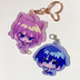 密会の連結アクリルキーホルダーのセットです。 (セット販売のみとなります) 大きさはどちらも約40mm、ナスカンはハート型、カラーはローズゴールド。 (充のみにナスカンがついています) どちらも裏打ち印刷で、フチまで印刷されています。 背景部分には薄めの白版が載っていて、光にかざすとマットな質感に見えます。 繋いだ時にゆらゆら揺れる姿がキュートです。 2枚目の写真の方が実物に近い色味になっています。