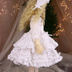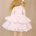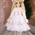 SDMサイズのワンピースセットです。 ◇ワンピース◇ かわいらしいワンピースです。 オフ白の綿ドビー地を、2段のスカートワンピースに仕立て、トーションレース、ケミカルをあしらい、ビーズ刺繍をしました。 襟はトーションレースをあしらけ、ギャザーを寄せた1枚で作りました。 スカートは1枚の布に全部の段を縫い付けることはせず、一段一段ギャザーを寄せ縫い合わせ、丁重に作りました。 座ると全円に広がります(着用しない場合は全円にはなりません)。 ビーズ刺繍はパールを中心に控え目な物を使い、やさしい雰囲気にしました。 見頃は綿ローンで裏を付けています。 袖は七分袖でカフスにレースを付けました。 裏なし、袖中側だけほつれ止めで処理しています。 後ろ開きスナップ留めです。 職業ミシン、家庭用ロックミシンを使ってます。 ◇ハーフボンネット◇ ワンピースと同じ布にウエストに、ケミカルレースとビーズ刺繍で飾りました。 頭に沿うようプラスチックワイヤーが入っています。 ◇髪飾り◇ 同布の簡単なリボンです。 ワニ口ピンで髪やボンネットにつけられます。 ◇パニエ◇ ハードチュールで作りました。 ウエストゴムです。 パニエは全円に広がりません。 ◇ネックレス◇ 鍵のチャームをつけました。 チャームがチェーンから抜け無いようにしています。 後ろ引き輪留めです。 ◇サイズ◇ SDMをモデルに作っています。 ワンピースは、MSDとMDD(胸の小さい子)も問題なく着られます。 MDDはハーフボンネットが着用できません。