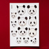 パンダの顔のイラストを転写タトゥーシールにしました。 用紙を2種類用意しました。透明タイプのものは、画面上、白地に見える部分は実際には透明になります。白地タイプのものは、画面上、白地に見える部分は実際に白になります。 貼り付けたときには、写真とは左右反転します。 ジャイアントパンダの顔のイラスト6種をサイズにバリエーションをつけて収録しました。同じパンダでも個体によりトンガリ頭だったり鼻が突き出ていたりアイパッチが跳ねていたりと個性があるのがわかります。 全12点(サイズ大 6点、サイズ小 6点)。 絵柄のサイズ サイズ大 長辺34〜35mm、サイズ小 長辺20〜21mm。 水で湿らせて貼り付けるだけなので簡単。はがすこともすぐできます。 透明タイプの用紙の場合、画面上、絵柄の白い部分、白地に見える部分は貼り付けると透明になります(写真2)。 白地タイプの用紙の場合、画面上、絵柄の白い部分、白地に見える部分は貼り付けると白になります(写真3)。絵柄の余白を少しだけ残すようていねいに切り取る必要があります。 タトゥーシールとして肌につける以外にも、プラスチックや金属など表面がなめらかなものに貼り付けられます。 【素材】 市販の転写シール 透明タイプ/白地タイプ 【サイズ】 幅100×高さ148mm(はがきサイズ) 【購入の際の注意点】 表面の粗いものにはきれいに転写できません。 水を使って転写させるため、紙など水に弱いものには転写できません。 肌に転写した場合は一日を目安にはがしてください。 シートは湿気を吸いやすい性質があるので、なるべく早めにお使いください。