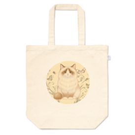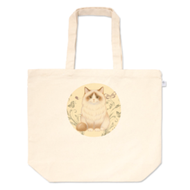トートバッグ - L - プリント面積小ふんわり優しいタッチで描いた もふもふラグドール風の猫ちゃんトートバッグ𓂃🐾 お買い物・通勤・学校・お散歩にも使いやすい S/M/L の3サイズをご用意しました。 ナチュラルな生成り生地に、 丸いフレームの猫デザインがやさしく馴染みます。 軽くて丈夫なので、 デイリーバッグとしてもギフトにもおすすめです🎁✨ この商品はpixivFACTORYで作られた商品です。サンプル画像は完成イメージのため、実物と異なる場合があります。