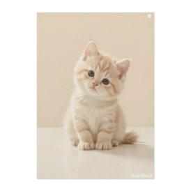 ポスター - B2この商品はpixivFACTORYで作られた商品です。サンプル画像は完成イメージのため、実物と異なる場合があります。 クリームタビー柄の子猫がちょこんと座る姿を描いた、やさしい色合いのミニマルアートです。暖かみのあるベージュ背景とシンプルな構図が、癒しと可愛い雰囲気を引き立てます。インテリアにも合わせやすく、飾るだけで空間が明るくなるポスターです。