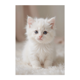 ポスター - B2この商品はpixivFACTORYで作られた商品です。サンプル画像は完成イメージのため、実物と異なる場合があります。 ふわふわの白い毛並みと、うるんだようなまんまるの瞳が愛らしい子猫のポスターです。柔らかい光に包まれた優しい雰囲気で、お部屋に癒しを与えてくれる一枚。猫好きの方にもインテリアとしてもおすすめです。
