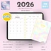 【2025年12月始まり】2026年デジタルプランナー毎日穏やかに過ごせる淡い優しい水彩柄おしゃれでかわいいプランナー【月曜始まり】