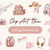 ピンクの旅モチーフ素材セット|水彩・ヴィンテージ風クリップアート
