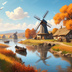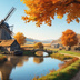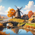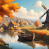 中世ファンタジー|秋に染まる風車の農村(昼)|10枚セット