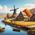 広々とした秋の村を、乾いた風がゆっくりと吹き抜ける。 小高い丘に建つ大きな風車はごうごうと回り、黄金色の畑と温かい木造家屋の影を長く伸ばしていく。 遠くでは大河が静かに流れ、小舟が穏やかに揺れながら橋の下をくぐる。 澄み切った昼空の下、村全体を包む柔らかな陽光が、どこか懐かしい牧歌的な時間を照らし出す。 - 秋の草原と丘にそびえる大風車 - 広がる村と木造家屋の暖かな風景 - 大河を進む小舟と小さな橋 - 澄んだ昼空と柔らかな光のコントラスト - 穏やかで温かな牧歌的ムード 【収録内容】PNG形式/2048×1152px/全10枚 【ご利用について】 ・商用・同人利用可(加工・合成自由) ・クレジット表記不要 ・再配布・転売は禁止 ゆったりとした秋の日差しを、あなたの作品世界へ。