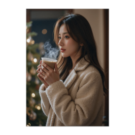 ポスター - B2この商品はpixivFACTORYで作られた商品です。サンプル画像は完成イメージのため、実物と異なる場合があります。 室内の温かなイルミネーションとクリスマスツリーの前で、ホットドリンクを持つ美女を描いた癒しのポスター。ふわふわの白いコートが冬らしい質感を引き立て、心まであたたまる一枚に仕上がっています。
