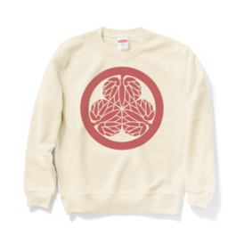 徳川家康・水戸黄門 三つ葉葵 スウェット オフホワイトに赤