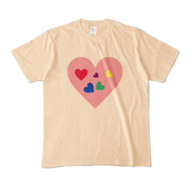 カラフルハートTシャツ ナチュラル (淡色)
