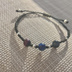 ボドゲ部のイデアとアズールをイメージして作成した。カイヤナイトの青さはボドゲ部の冷静さや適応力を表現、2人の勝ち筋を見付けて行くところがそんなイメージだった為、石言葉的にも合うと思いました。そして、その石を挟む左右のギャラクシータイガーアイは洞察力や決断力が石言葉で、色味も2人の色味が入っており、黒く見える部分はオバブロした時のそれや部活の服装にも似ているところから選びました。 広げてから着用し、紐を先端で引っ張り締めて自分に調度良いサイズにして頂けたらと思います。 水には弱いので付けっぱなしにする事は出来ませんがイメージ、概念として是非手に取って頂ければ嬉しいです。 サイズ最小約17cm〜最大約26cm