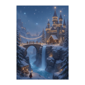 ポスター - B2この商品はpixivFACTORYで作られた商品です。サンプル画像は完成イメージのため、実物と異なる場合があります。 星がまたたく夜空の下、温かな光に包まれたクリスマスの城を描いた幻想的なポスターです。雪化粧の滝や橋、星形オーナメントに彩られた塔が、物語のようなクリスマスナイトを演出します。幻想的でロマンチックな冬のアートをお部屋に。