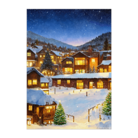 ポスター - B2この商品はpixivFACTORYで作られた商品です。サンプル画像は完成イメージのため、実物と異なる場合があります。 高台から見下ろす、雪に包まれたクリスマスの村。 家々の窓の灯りが星空と響き合い、静かで美しい冬の夜景が広がります。 水彩油彩風のノスタルジックなタッチが、温もりあるクリスマスを描き出します。