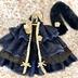 ・ドレスボディ ・ドレススカート ・ファー [バックスタイル] ・スナップボタン ・首後ろリボン結び ※首・頭用リボンは長めに作ってあります。長すぎる場合は切り揃え、端を熱処理(軽く火に近づけるなど※引火に十分ご注意ください)するとほつれがなくなります。 ⚠️濃い色のドレスは、ドールの素材によっては色移りの危険があります。色移り防止肌着のご利用や、長時間の着用を避けるなど対策をお願いいたします。色移り等が発生した場合の責任は負い兼ねます。