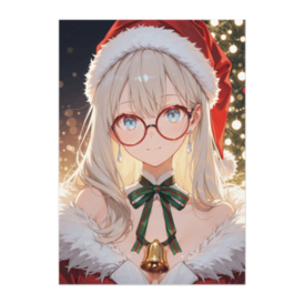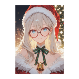 ポスター - B2この商品はpixivFACTORYで作られた商品です。サンプル画像は完成イメージのため、実物と異なる場合があります。 きらめくクリスマスツリーの前で、ベルを胸元にそっと揺らす金髪の少女。赤いサンタ帽と眼鏡が印象的で、冬の空気に溶け込むような優しい表情が魅力の作品です。光に包まれた温かな聖夜のムードをお楽しみください。