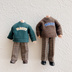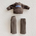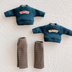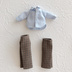 【ob11】チェックのスラックスのセット 【IVYスウェット+スラックス】 ■コットンのニット生地にアイロンプリントのスウェットです。 セットインスリーブでステッチも入れいています。 (開きはないのでヘッドを外して着せてください) ■スラックス スタンダードなセンタープレスのパンツですが、 雰囲気や太さ、丈感など合わせやすさを重視して作りました。 生地はブラウン系のハウンドトゥースチェックです。 靴のところでワンクッション溜まる感じの丈にしています。 それほど細身ではないのですがセンタープレスありですので、 まあまあスッキリ脚長に見えるラインだと思います。 ピコドー10と共用にしたかったのでウェスト部はゆとり多めです。 オビツ11+身長調整キット仕様とオビツ11で丈を7mm変えてあります。 デフォルトはオビツ11対応丈でセットしてあります。 【身長調整サイズをご希望の方は】メッセージ、備考欄などからお知らせください。 (翌日発送になりますのでご注文時かオーダー後すぐにご連絡ください) 【シャツ+スラックス】 ■スタンダードシャツ スタンダードなオックスフォードシャツ風に仕立てたシャツ (使用生地はオックスフォードではなく目の詰まった綿ブロードです) 表前立て風のステッチを掛けています。 ホットフィックスでボタンを表現しています。 第二ボタンから一番下のボタンの所まで接着して閉じています。 襟は少し立ち上がっているような形です。 ■スラックス スタンダードなセンタープレスのパンツですが、 雰囲気や太さ、丈感など合わせやすさを重視して作りました。 生地はブラウン系のハウンドトゥースチェックです。 靴のところでワンクッション溜まる感じの丈にしています。 それほど細身ではないのですがセンタープレスありですので、 まあまあスッキリ脚長に見えるラインだと思います。 ピコドー10と共用にしたかったのでウェスト部はゆとり多めです。 オビツ11+身長調整キット仕様とオビツ11で丈を7mm変えてあります。 デフォルトはオビツ11対応丈でセットしてあります。 【身長調整サイズをご希望の方は】メッセージ、備考欄などからお知らせください。 (翌日発送になりますのでご注文時かオーダー後すぐにご連絡ください)