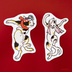 歌川国芳が描いた踊る猫又の絵のシールタイプステッカーです。2種の絵柄で1セットとなっています。 光沢ホワイトシールに印刷した上に保護用フィルムを貼っているので、耐水性、耐光性があります。 スマホやパソコン、スーツケース、車のボディなどに貼って楽しんでください。 無類の猫好きとしても知られる浮世絵師・歌川国芳。猫をモチーフとした作品も数多く残しています。その中から「見立東海道五拾三次 岡部 猫石の由来」の中で小さく描かれている踊る猫又、「梅初春五十三駅」の中で描かれている踊る猫又をトレースしてステッカーにしました。 【素材】 光沢ホワイトシール ポリエステルフィルム+インクジェット専用塗工 厚さ0.15mm 保護用フィルム ポリエステルフィルム 【サイズ】 幅62x高さ90mm、幅52x高さ93mm 【購入の際の注意点】 写真と実物では多少色味が異なる場合があります。 市販のインクジェットプリンタで印刷し、手作業でカバーフィルムを貼り、手作業でカットしているので、精密さに欠けるところがあります。あらかじめご了承ください。