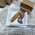 ぬいちゃんサイズのミニチュアパンのセットになります。 樹脂粘土でひとつひとつ形を作ってから焼き色やデコレーションペイントを塗布し、艶出しニスで仕上げているので撥水加工済です。 樹脂粘土処女作なので相場より遥かに安価ですが、真心込めて丁寧に作らせていただきました。 焼き色やトッピングなどには若干の個体差がありますのでご了承ください。 ■ホリデーなおいち3種セット 欲張りチョコドーナツ×1個 ハートのチョコ乗せいちごパン×1個 レモン味の爽やかパン×1個 ※ホリデーなおいち3種セットはプラスチック素材の簡易ケースに入れてのお届けになります。 ■ぬいちゃんのお食事パン3個セット ぬいちゃんバケット×1個 イチゴソースがけチョコクロワッサン×2個 ※ぬいちゃんのお食事パン3個セットはミニチュアパン用紙袋に入れてのお届けになります✨