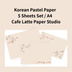 韓国風パステルデジタルペーパー|淡色ゆるかわ A4 5枚セット|Cafe Latte Paper Studio