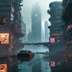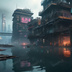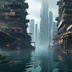 退廃サイバーパンク|水没した摩天楼|10枚セット
