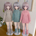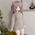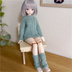 ふんわりやさしいウールとカシミヤの糸で編んだ、ケーブル模様の長袖ワンピースとレッグウォーマーのセットです。 柔らかな手ざわりと軽やかな着心地で、寒い季節もドールをあたたかく包み込んでくれます。お揃いのレッグウォーマーを合わせれば、コーディネートがより可愛らしくまとまります。 後ろに開きがないデザインのため、ヘッドと腕を外しての着用を推奨します。 <Body Size> 1/4サイズ(MDD、MDDもちあし、imomodoll など) <Size(cm)> 着丈:17 身幅:9.5 袖丈:13.5 <Material> ウール95%/カシミヤ5% <注意注意事項> ※撮影で使用しているドール本体、ウィッグ、アイ、靴などはセットに含まれておりません。 ※一度洗いをかけておりますが、長時間の着用による色移りにご注意ください。 ※手洗い可能です。伸びやすいため、形を整えてから平干しをおすすめします。 乾いた後はアイロンで潰さないようにスチームを当てて整える事をおすすめします。 ※商品写真は出来る限り実物に近くなるよう調整しておりますが、お使いの端末や閲覧環境により、色味や質感がイメージと多少異なる可能性があります。