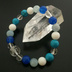 新撰組の旗印『誠』の彫刻が入った水晶と天然石のブレスレットです。 使用している石は水晶、青瑪瑙、アクアマリン、ターコイズ、ホワイトオニキスです。 【素材】 水晶…6、8、10ミリ 青瑪瑙…8ミリ アクアマリン…8ミリ ターコイズ…8ミリ ホワイトオニキス…8ミリ 【効果】 水晶…運気アップ、潜在能力を引き出す 青瑪瑙…知性・理性を高める、精神の安定 アクアマリン…幸せな結婚、平和な気持ち ターコイズ…勇気とやる気、ストレスの軽減 ホワイトオニキス…魔除け、明るい未来を示す 内径14センチ程度 ※注意 ブレスレットはオペロンという伸びるテグスを使用しています。 それなりの強度はありますがあまり強く引っ張り過ぎると切れたり伸びたりする場合がありますのでご注意ください。 使用状況によりゴムの劣化が早まる場合があります。汗や水に濡れたままにしたり、長い間使用していない時などはゴムの劣化が起きていないか確認してください。 劣化を放置していると使用中にゴムが切れてしまう場合があります。 ご利用のモニター環境により実物と若干色あい等が異なる場合があります。
