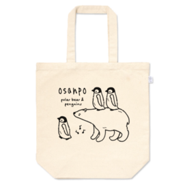 トートバッグ - M - プリント面積中ペンギンのヒナ達としろくまくん、一緒に楽しくお散歩♪