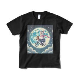 うっかり月まで飛んじゃったアルパカTシャツ B(ブラック/ネイビー)