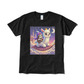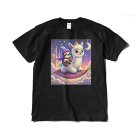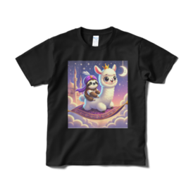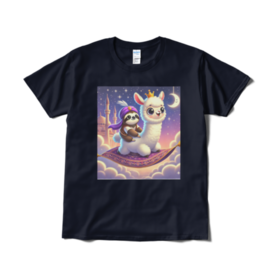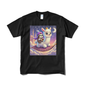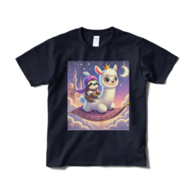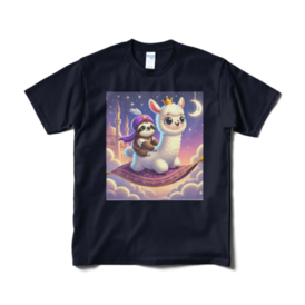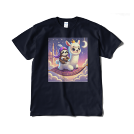 うっかり魔法のじゅうたんに乗っちゃったアルパカTシャツ B(ブラック/ネイビー)