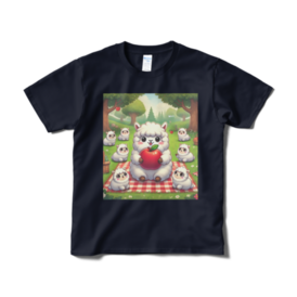 Tシャツ(短納期) - XL - ネイビーこの商品はpixivFACTORYで作られた商品です。サンプル画像は完成イメージのため、実物と異なる場合があります。 🍎🌳**「うっかり自分だけリンゴをかじっちゃったアルパカ」**登場! 今日は森でピクニック。みんなで楽しく過ごすはずだったのに… 主役アルパカ、うっかり美味しそうなリンゴをひとりでパクリ。 周りには、キラキラした目で見つめる7匹の子アルパカたち。 その視線に気づいた瞬間、アルパカは顔だけこっちを向いて、 「え?今ちょっと気まずい感じ…?」みたいなキョトン顔。 そんなじわじわくる“うっかり”感をTシャツにぎゅっと詰め込みました。 「うっかりアルパカシリーズ」第5弾。ピクニックに、日常に、気まずさをどうぞ。 🦙 うっかりだけど、ちゃんとかわいい。 それが「うっかりアルパカシリーズ」。 ■商品説明 生地:綿 100% 印刷面:表 サイズ:4種 S/M/L/XL カラー:ブラック/ネイビー ※pixivFACTORYのグッズ素材の在庫欠品により 一部の商品の製造が出来ないことがございます。 ※BOOTHの仕様上、同時決済された商品は一括配送されます。 他の商品と同時購入される際はご注意ください。 ※発送状況はBOOTHにお問い合わせください。