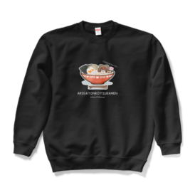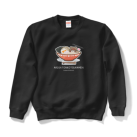 XLサイズ(ブラック)ゆるく着れるありがとんこつらーめんスウェットです🐻 スウェット・パーカー大好きなのでとってもお気に入りです。 ホワイトとブラックの2色ご用意しております。 (着用画像は全てLサイズです) 生地:綿100% イラストレーター「9egg9 ふち」様 【注意事項】 ※この商品はpixivFACTORY様より製造・配送される商品です。 ※商品画像はイメージです。実際の商品とは異なる場合がございます。 ※印刷の関係上、ブラックカラーのイラストは ホワイトより少し落ち着いた色合いになっています。