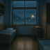 雨の夜の寮部屋|アニメ背景素材 3枚セット|差分あり・商用利用OK・動画/配信/AI生成に最適