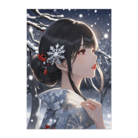 ポスター - B2この商品はpixivFACTORYで作られた商品です。サンプル画像は完成イメージのため、実物と異なる場合があります。 青みがかった冬の森を背景に、氷の結晶の髪飾りをつけた女性を描いた幻想的なポスター。 冷たい空気の中に凛と立つ横顔から、静かな祈りのような美しさが漂います。 冬のインテリアに上品な落ち着きを添える一枚です。