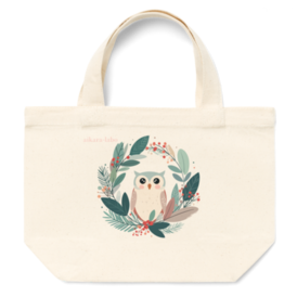 【クリスマスリースとフクロウ】ミニトートバッグ(ブラック/ナチュラル)