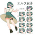 【立ち絵素材】緑髪のエルフの女の子/表情10種