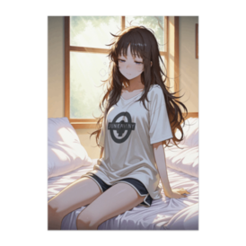 ポスター - B2この商品はpixivFACTORYで作られた商品です。サンプル画像は完成イメージのため、実物と異なる場合があります。 ボサボサの髪と“はぁ〜何〜”とでも言いたげな虚脱表情が魅力の、等身大の寝起き女子を描いた一枚。 ゆるいTシャツと短パン姿、差し込む朝日がリアルな生活感を演出します。 ほっと力の抜けるような共感系アートポスター。