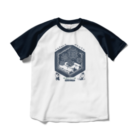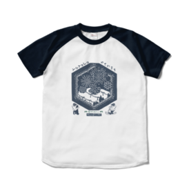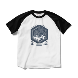ゲレンデ冬花火・湯沢町_ラグランTシャツ 黒白【新潟県を巡るザワたろー】