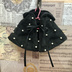 シチリアの追憶シリーズ基準で製作した冬用のフード付きケープです。 ダイヤキルトのボア生地にパールを一つずつ手縫いで留めてあります。 仕様 ・黒(レース/黒リボン) ・黒(レースなし/黒リボン) ・ピンク(レースなし/白リボン) 対応サイズ シチリアの追憶を基準にしています。 ケープ形状のため、近似サイズも着用可能です。 着用感・丈感は多少変わります。 注意事項 ・ハンドメイド品のため、写真と実物とで仕上がり・色味・柄の出方に差があります ・ステッチやパールの位置に多少のズレ・歪みが生じます ・濃色生地の色移りリスクあり(補償はできません) ・猫を飼っています。アレルギーの方はご注意ください ・返品交換不可 ・撮影に使用したドール・小物は付属しません よろしくお願いします。