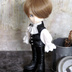 Phantom ~幻影の魔人~ オビツ11サイズのファントム風衣装セット 廃墟となったオペラハウスに棲む魔人、のイメージです ・シャツ ・パンツ ・ロングケープ ・ハット 以上のセットです ドール本体、ウィッグ、靴、その他撮影に使用した小物類は含まれません 使用素材はフェイクレザー、綿ローン、トーションレース等 ケープとハットはフェルト製です。ハットのクラウンとブリムは布用ボンドで接着していますので、強い力を掛けないようご注意ください パンツは開きなし、トップスは後ろスナップ留め 着脱の際には、ハンドパーツと足パーツを外して下さい ハットには、ピンやゴムなどの固定用パーツは付いていません。お好みの角度で乗せて頂くだけになります ※AK-Garden28にて頒布した作品と同一デザインです ※ハンドメイドにつき、画像見本とは細部が異なる場合があります ※オビツ11デフォルトボディ以外への対応は未確認です