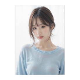 ポスター - B2この商品はpixivFACTORYで作られた商品です。サンプル画像は完成イメージのため、実物と異なる場合があります。 #ポスター #美女 #癒し #ブルーニット #自然光 #清楚系 #ポートレート #AIアート #透明感 #穏やかな表情 #SEIMEI2025