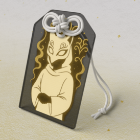 浄化の紫符香草庵では、ときどき夜更けにだけ開く“見えない棚”があり、 そこには、日によって違う札がそっと並ぶといいます。 このお守りキーホルダーは、 そんな棚に一晩だけ姿を現した 三つの札 を 現界へ持ち帰った、という設定でデザインしたものです。 大きさは 50 × 80mm。 掌に収めると、わずかに体温を吸い込むような、 不思議なアクリルのひかり方をします。 🖤 黒の守り札(仮面薬師の影札) 香草庵の夜を歩く“仮面薬師りゃんシー”の 気配だけを写し取った札。 姿ははっきりと描かれず、淡い影となって立っています。 これは本人を表す肖像ではなく—— “薬師がその人にだけ残してゆく残光”のようなもの。 金色の煙文様は、薬草を焚いた時に浮かぶ精霊の痕跡を意味します。 手にすると、 「闇の中でも迷わないでいいよ」 と囁くような温度が、そっと胸の奥で広がる札。 🌿 薬草の庇護符(三草の守り札) セージ・ローズマリー・ユーカリ—— 香草庵で“浄め・蘇り・呼吸”を象徴すると言われる三草を 古文書のような線で描いた札。 この三草が揃うと、精霊の道が整い、 持ち主の心身の“巡り”がやわらかく整うと伝えられています。 静かな深緑の中で、植物たちが 「大丈夫、今日も息をしていいよ」 と語りかけてくるような札。 💜 浄化の紫符(精霊のめぐり札) 香草庵の天井近くに宿るとされる“光の精”の軌跡を 紫の環紋として描いた浄化札。 夜明け前の空のように淡く光る紫は、 気の濁りを吸い、星の模様となって散らしていくといわれます。 気疲れした日、眠れない夜、 ただ静かに整いたい時。 この札は、心を一度まっさらに戻す“深呼吸の代わり”になるはず。