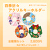 atnrオンリー2 A-お8 ガラクタ屋クマの小道 シーズンに合わせてリースを部屋に飾ろう!! 【サイズ・仕様】 サイズ:80×80mm(全種類) キーホルダー:ピンクゴールドナスカン(全種類) 印刷:片面表刷り(全種類) アクリル板色:ジュレップス ピーチ(春) ジュレップス ソーダ(夏) ジュレップス オレンジ(秋) ジュレップス ホワイト(冬)