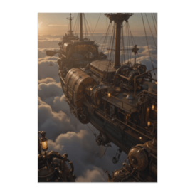 ポスター - B2この商品はpixivFACTORYで作られた商品です。サンプル画像は完成イメージのため、実物と異なる場合があります。 雲海の上を堂々と進む巨大な蒸気飛行船艦隊を描いたスチームパンク作品。夕陽に照らされた金属の輝き、複雑な機械構造、幻想的な空の広がりがドラマチックな世界観を作り上げています。冒険心を刺激する壮大な一枚です。
