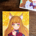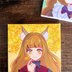 キャンバス原画 原画販売 アクリルガッシュ原画 狐と銀杏 ミニキャンバス
