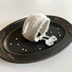 ホリデーシーズンにぴったりなキラキラボンネット。ボンネットを結ぶお花モチーフにはガラスのラインストーンが付いています。