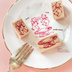 並べて押せばエンブレムのようなフレームが作れるスタンプセットを作りました。スタンドにケーキを載せたりくまさんのステージにしたりアレンジも色々 角砂糖みたいな白いキューブ型缶入りです 6デザインそれぞれ単品で使っていただいても可愛いように細かく描かせて頂きました!リボンの文字がしっかりわかるように仕上がっていてホッとしています! くまちゃんとねこちゃんにうまく乾杯してもらうのに慣れが必要そうですが、ぜひやってみて下さいね 缶はスタンプの他にお手持ちのパッドやマステ、小さいメモや付箋を一緒に入れておくのに良さそうかなぁと思っています 職場にちょいおきセットや、お台所で使うセットみたいに使って頂けると良さそうです もちろん缶だけを綿棒入れなど別の用途に使っても セット販売のみ6柄セット