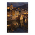 ランタンが灯る川辺の街夜景(油絵風ポスター)