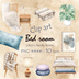Lilico's familyの北欧インテリア-Bed room クリップアート10点|背景透過PNG・商用OK・SNS&ブログに最適!