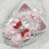 ♡ぬい服 10〜12cm用 ピンク×レッド ねこちゃん チェーンフック付き♡