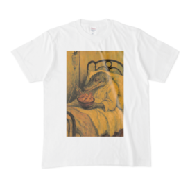 Tシャツ - XL - 白※この商品はpixivFACTORYで作られた商品です。サンプル画像は完成イメージのため、実物と異なる場合があります。 使用しているのは、ChatGPTに以下のプロンプトを入力し、生成された画像になります。 「病弱な深窓の令嬢(ワニ)が病院のベッドでてんこもりの天丼を食べているところをロートレック風に描いてください。」 (生成された画像には、一部当方で手が加えられている場合があります。)